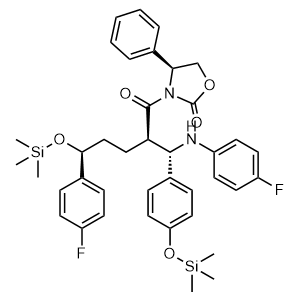 (S)-3-((2R,5S)-5-(4-fluorophenyl)-2-((S)-((4-fluorophenyl)amino)(4-((trimethylsilyl)oxy)phenyl)methyl)-5-((trimethylsilyl)oxy)pentanoyl)-4-phenyloxazolidin-2-one